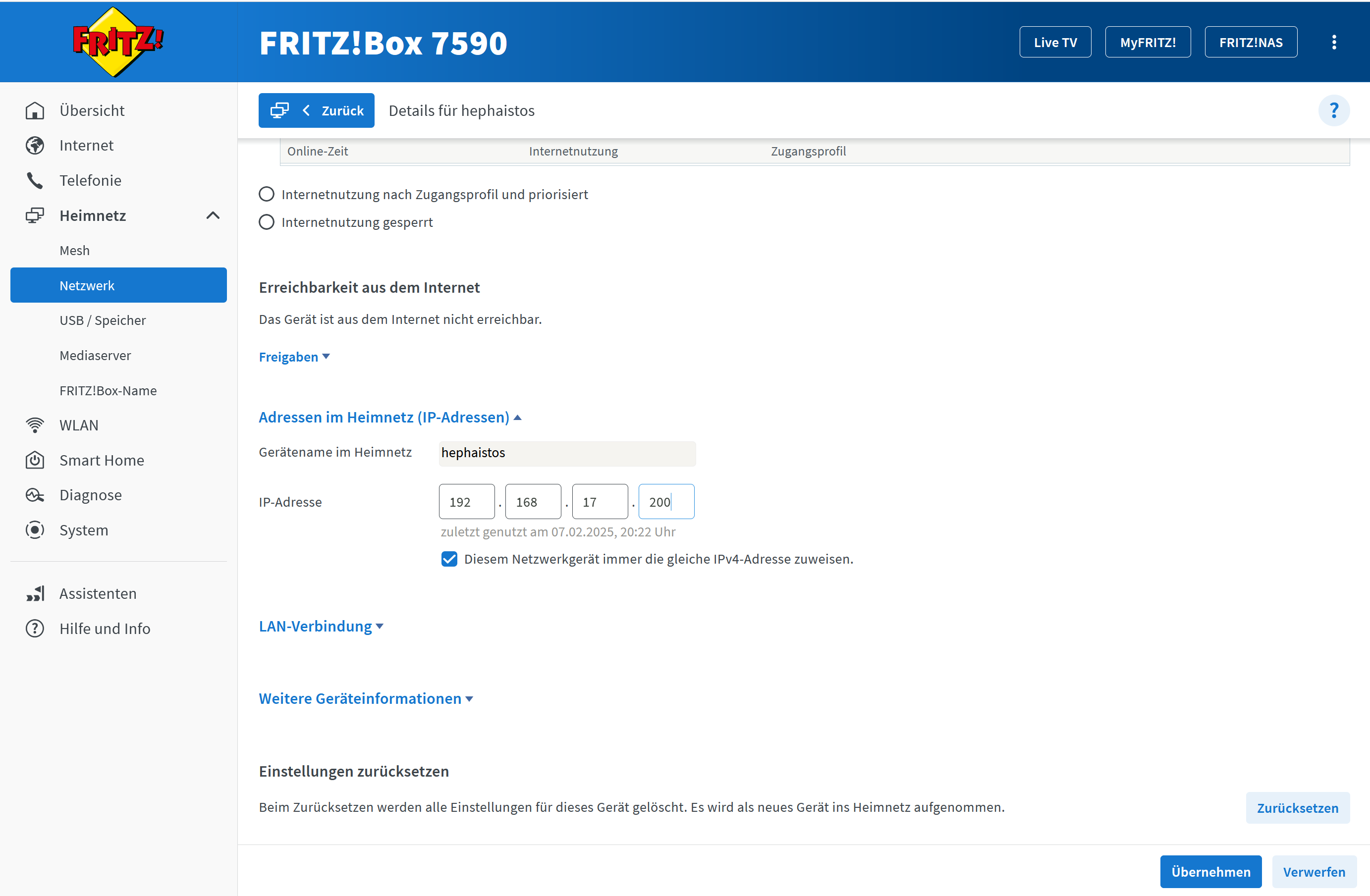 IP in FRITZ!box fest zuweisen
