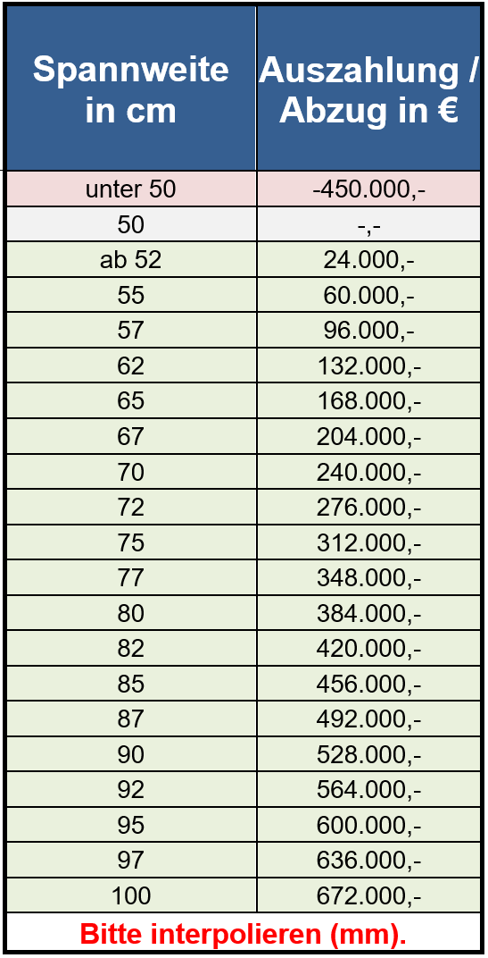 - Gemessen wird nur die frei tragende Spannweite.
