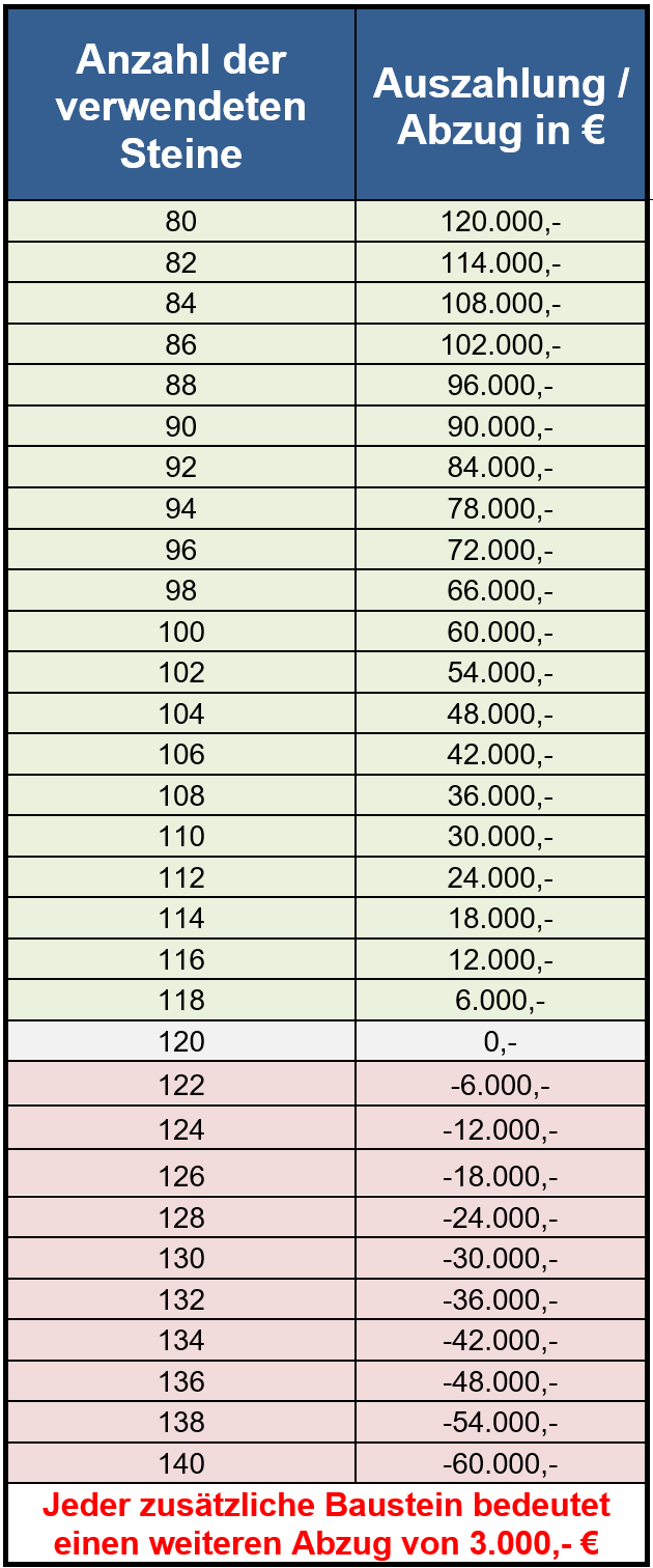- Als Baumaterial kommen nur die ausgehändigten Bausteine in Frage.